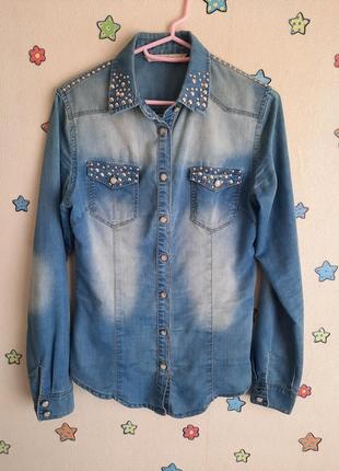 Стильная и красивая джинсовая рубашечка. Состояние идеальное.