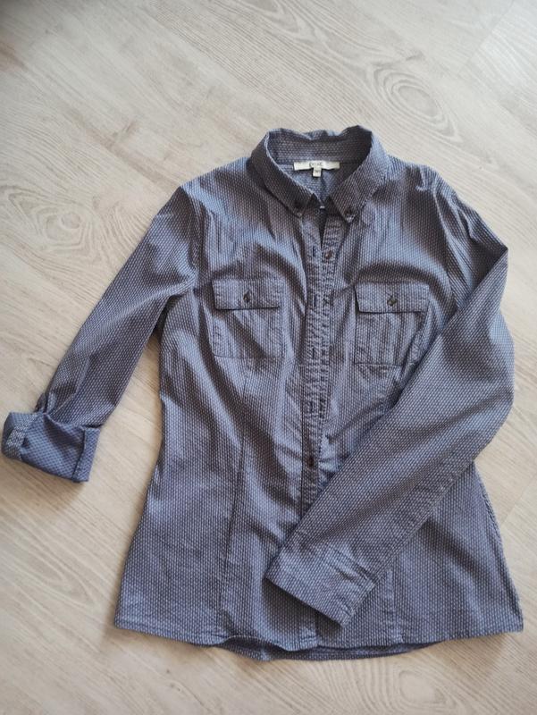 Якісна сорочка, йде по фігурі. Рукава можна закочувати,є петелька з гудзиком. Розмір s-m.