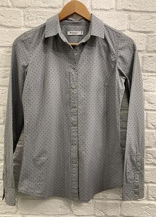серая рубашка в синий мелкий горошек , очень стильное сочетание размер s