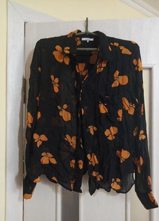 Блузка очень лёгкая и прозрачная, красиво будет смотреться с топиком. Размер 46