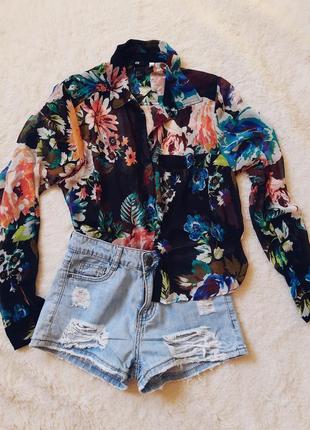 Дуже красива , яскрава коротка сорочка . Напівпрозора . Нова , не носилася , але бирки викинула . Розмір 36 Довжина - 55 см Від пахви до пахви - 49 см Шорти на фото в наявності .