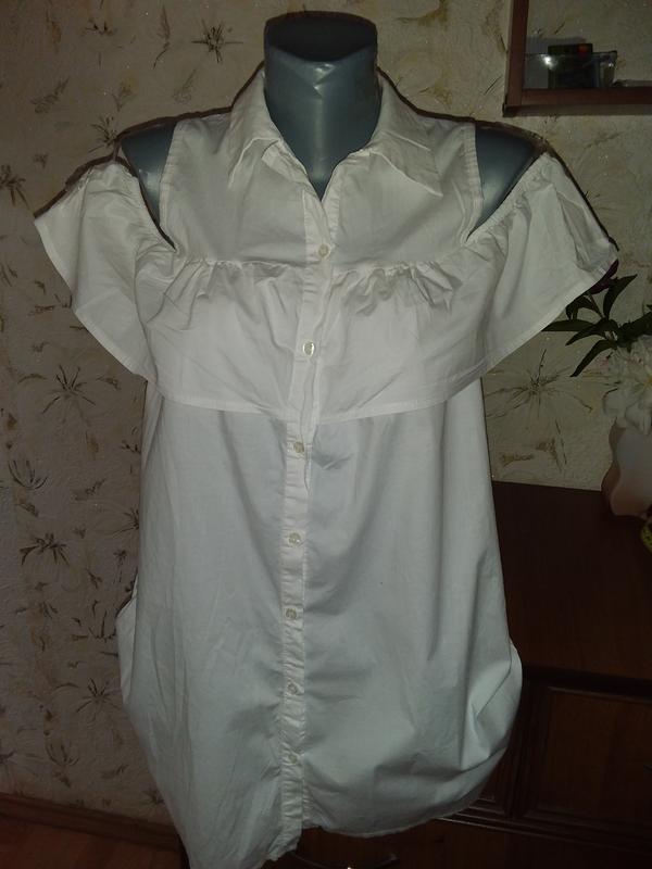 Этикетки с размером нет, смотрите замеры. Цвет белый. Ткань средней плотности, не тянется. Состояние отличное, без дефектов. Длина от верхней точки плеча к низу 79. П/о груди, соблюдая все сборки 46. П/о талии, соблюдая все сборки 50. П/о бедер, соблюдая все сборки 55. Ширина между плечевыми швами 29.