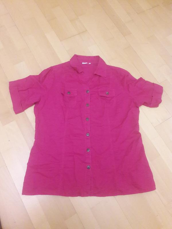 Рубашка 50 размера цвета фуксия. Плечи 45см, ПОГ 65см, ширина внизу 60см, длина 77см.Бренд Outfit, Германия. Новая, сток. в наличии 2 рубашки. Состав - см. фото.