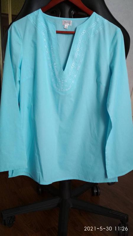 Blue Motion это немецкий бренд женской одежды. Страна производитель Германия. Блуза выполнена из тончайшего хлопка! Украшает нежная еле заметная вышивка белым шёлком. Консультацию, точные замеры предоставлю. ПИШИТЕ. Оплата полная или наложенный платёж. Оплата на карту Приват банка. Заходите во второй мой магазин. Более 100 отзывов здесь : https://shafa.ua/member/melisi