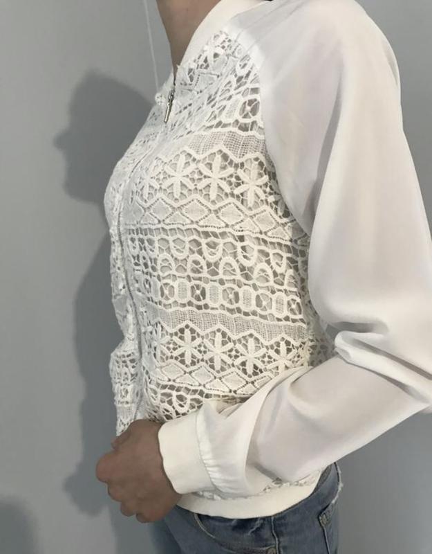 Нарядна кофтинка piazza italia з мереживом Стильна та якісна кофтинка Розмір M Якість 🔥 Підкладка вся з шифону, спереду та ззаду якісне мереживо з котону Без дефектів Колір не білосніжний, айворі чи ближче до молочного відтінку Заміри: ✔️ Довжина від комірця - 60 см ✔️ Довжина замочка - 46 см ✔️Ширина знизу по резинці - 42 см