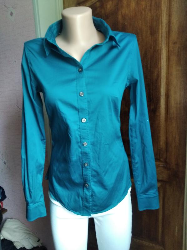 приталенная рубашка темно- бирюзового цвета. замеры по запросу. состояние новой вещи.