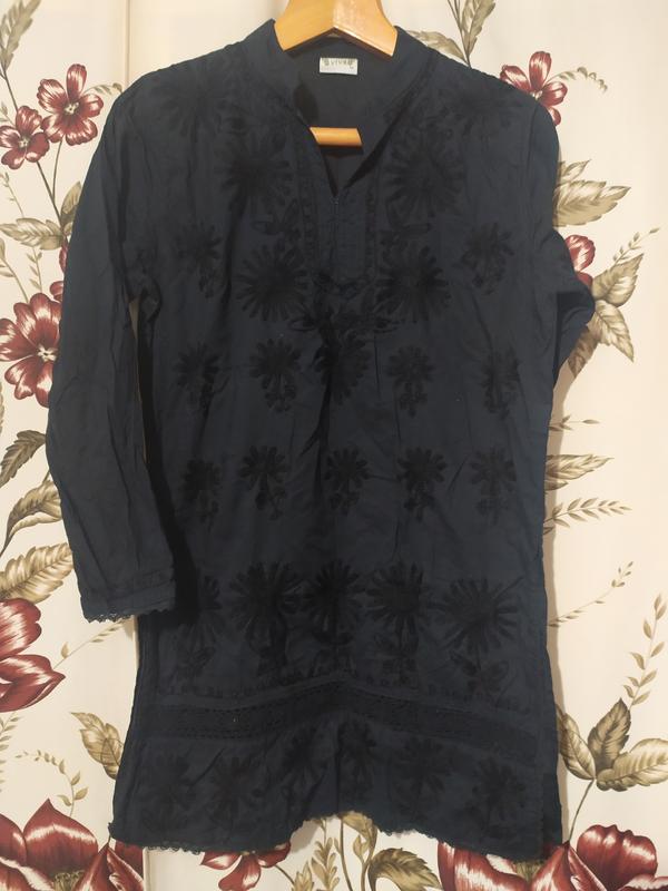 чорна туніка з вишивкою и круживом