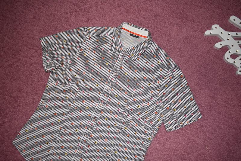 В идеальном состоянии. Шикарное качество ткани люкс. Рубашка в горох в цветочный принт.