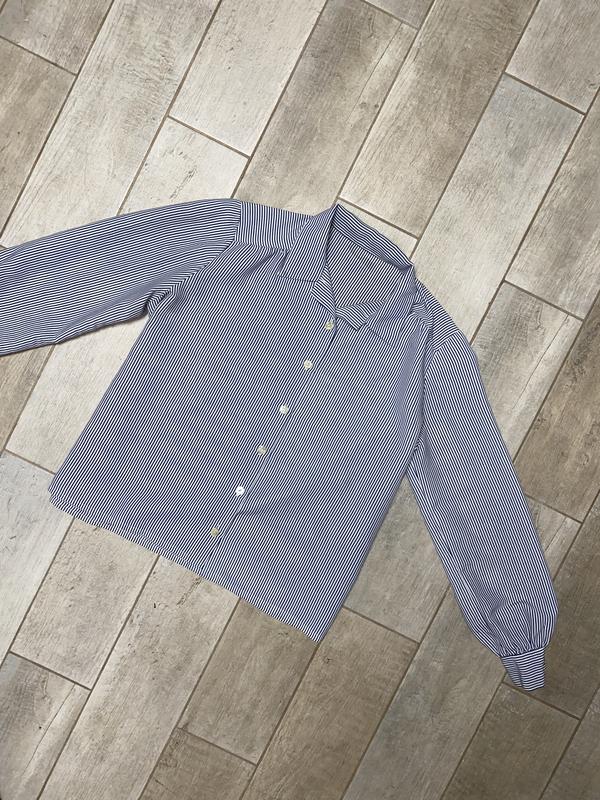 Белая рубашка в тонкую синюю полоску(012)