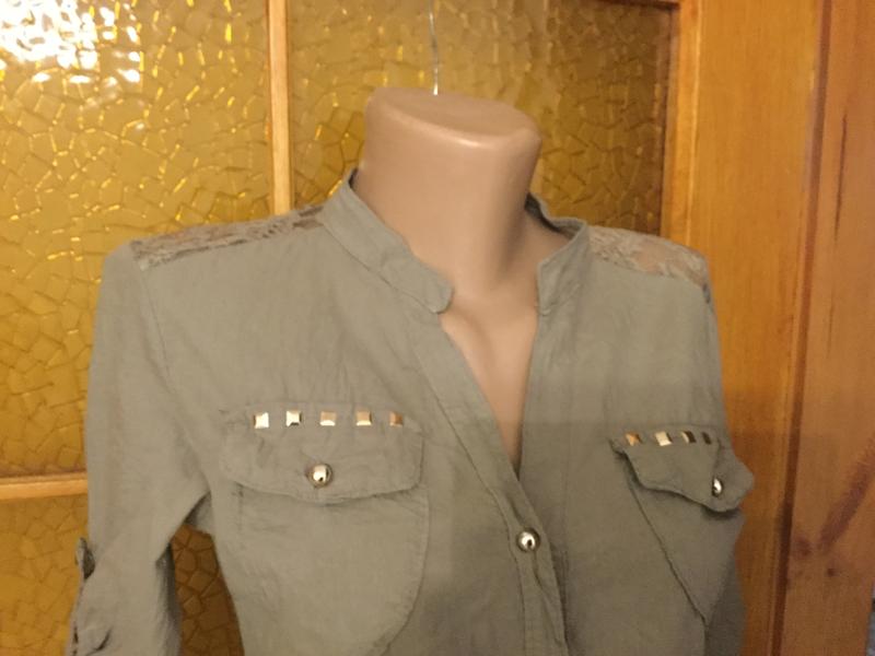 Котоновая. С гипюровыми вставками. ПОГ - 44 см. Рукав - 44см. Если піднять на пуговицу, то 30 см. Длина по спине - 63 см.