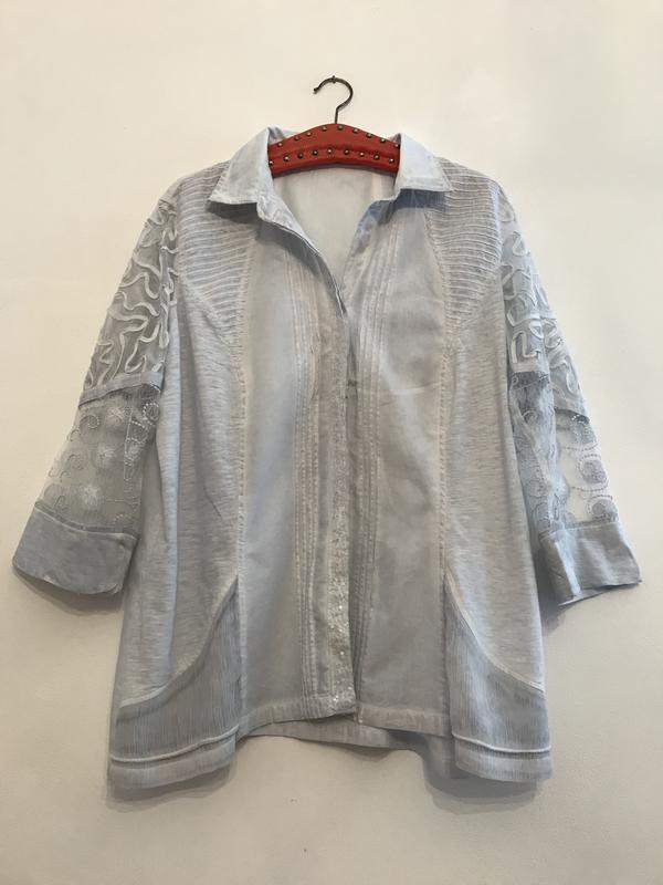 Красива блузка-сорочка. Бирка зрізана бренду. Стильний дизайн,натуральний матеріал, Колір ніжно-блакитний (денім) Меряйтесь за вимірами зазначених в описі.. Довжина від плеча 73 Плечі 44-47 Рукав 51 Пог від 61 до 74 Піт 61 до 70 По низу 66-73 Доставка Укрпошта та Нп, безпечної оплати немає, читайте відгуки покупців і розділ про продавця.