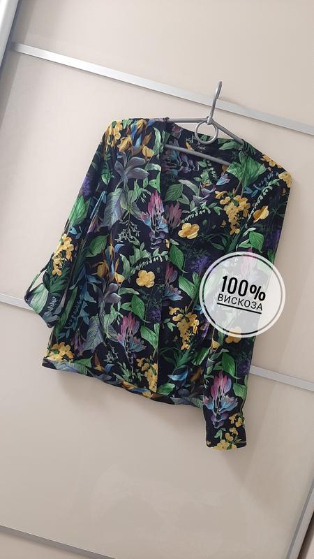 Хорошая блуза рубашечка,из натуральной вискозы,мягенькая и приятная к телу👍 Красивый цветочный принт,подойдет под любой низ! Модель спереди с имитацией запаха и пуговицами,по низу сзади присобрано резиночками,V образный вырез,рукав можно носить двумя вариантами,есть петелька🌼 Состояние идеальное Размер написан 12uk Смотрите замеры: длина от горловины 61 см. от подмышки до подмышки 48-50 см. по низу 44 см.тянется до 54 см. плечи 37.5 см. рукав 62 см.регулируется