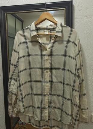 Натуральна, якісна сорочка молочного кольору в клітинку, повністю нова, бірка знята.