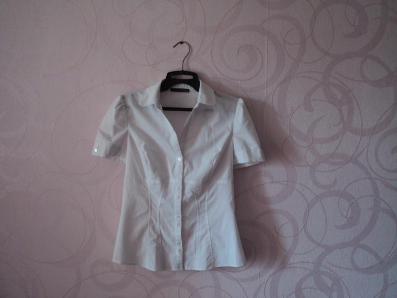 СТРАНИЦА НА ПАУЗЕ продажи приостановлены но напишите мне, если что-то вас интересует сообщу о восстановлении продаж ====================================== ЗАМЕРЫ размер = 10 UK длина изделия = 60 см (от плеча) пог = 44 см длина рукава по внутреннему шву = 4 см ширина по плечам = 36 см рукава немного фонариками пуговицы до декольте, не до ворота впереди есть потертости по ткани между пуговицами (см посл.фото, там висел бейдж, все из-за него), но визуально не заметно других дефектов нет, фото на себе нет ====================================== С ЧЕМ НАДЕВАТЬ подойдет к деловым брюкам такого типа: https://shafa.ua/women/bryuki/klassicheskie/4714876-temno-serye-bryuki-v-ofis также неплохо будет смотреться с юбкой такой - менее формальной: https://shafa.ua/women/yubki/mini/6902459-golubaya-yubka-s-poloskami или такой - более формальной: https://shafa.ua/women/yubki/midi/3490986-sinyaya-yubka-vintazh-retro