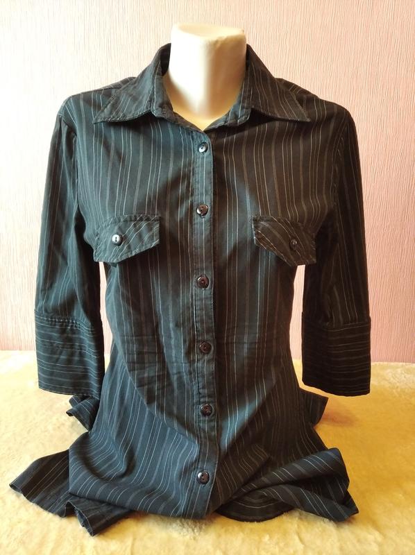 Удлиненная рубашка в мелкую полоску Укороченный рукав Отложной воротник Спереди два кармана-обманки Длина от плеча 76 см Размер S-L Ткань качественная и эластичная Новая, без ценника По всем дополнительным вопросам обращайтесь в любое время