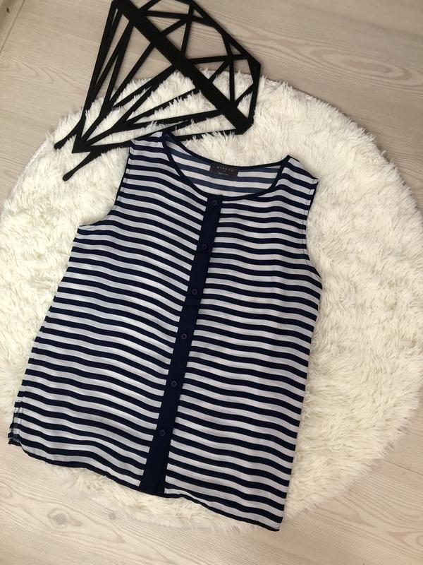 Стильная тельняшка на море Лёгкая , струящаяся ткань По боках разрезы Идеальное состояние,есть 2 небольшие зацепки (последнее фото) при носке не видно Замеры Длина-61 П.о.г-47
