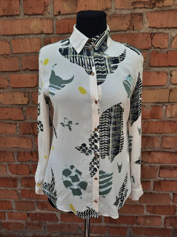 Lala Berlin — немецкий модный бренд, основанный в 2004 году. Главная особенность бренда — тщательный отбор материалов. Модельеры создают изделия высококачественных тканей — шелка, хлопка, кашемира, джерси. Кроме этого, используются волокна натурального происхождения, например, бамбук.Броские принты, четкие геометрические формы, черно-белые узоры и оригинальный декор делают куртки, платья, кюлоты и топы марки узнаваемыми. Цветовая палитра Lala Berlin представлена белым, черным и пастельно-розовым оттенками. Размер:М. Плечи 42 см, пог 46 см, длина 66 см, рукав 58 см