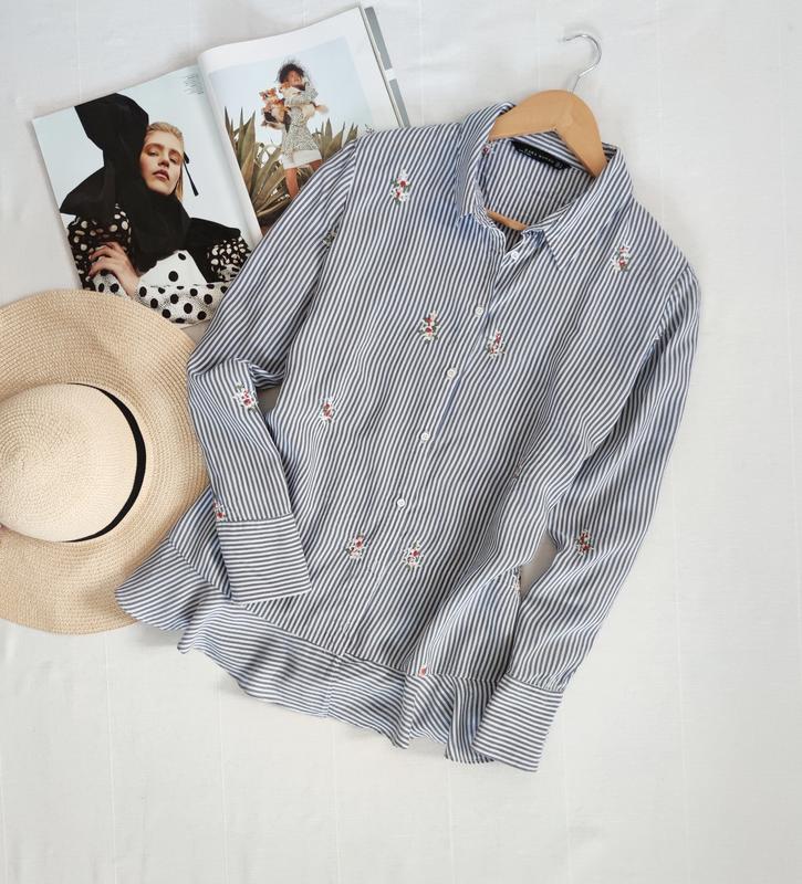 Сорочка в полоску від Zara доповнена вишивкою і рюшею, розмір L, ПО грудей 53 см, довжина 70 см