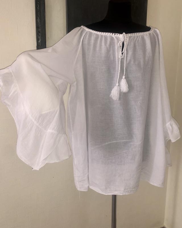 Великолепная роскошная тончайшая блуза oversize размера в идеальном состоянии, можно носить разными. вариациями , с преспущенным плечиком, завязывая вверху кистями, под пояс или без👍🏽Рукава👍🏽👍🏽👍🏽На фото манекен 46-го, подойдёт до размера 56 .