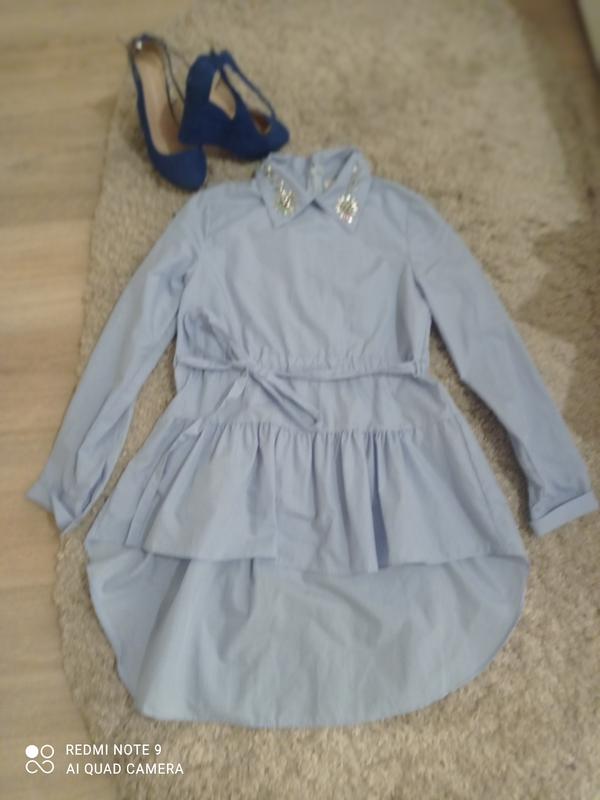 голубая с стразами рубашка s,80% вискози,20%поліестер