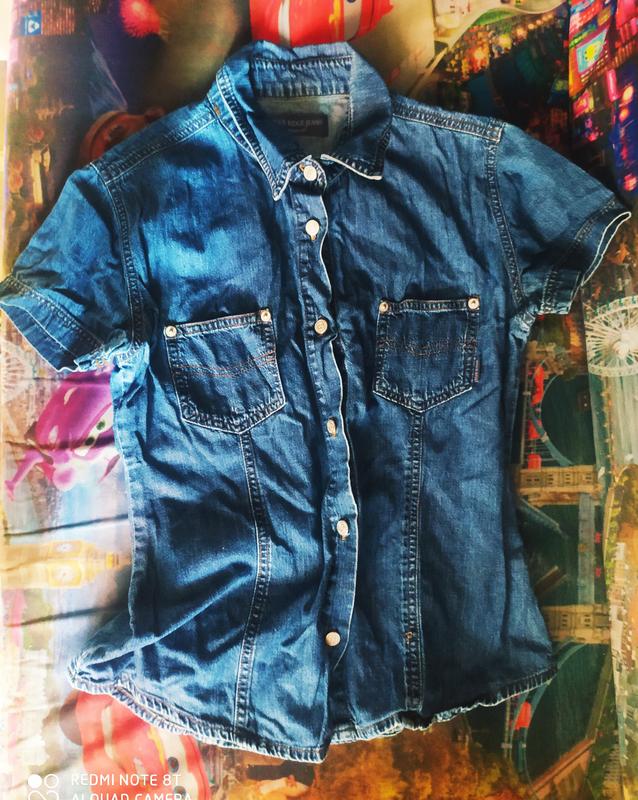 джинсовая рубашка 46-48р плечи 40см,пог 49см, длина 61см.