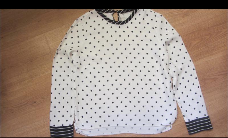Очень красивая блуза в горошек ,приятная к телу ,размер s-m,за фото на теле и замерами пишите )