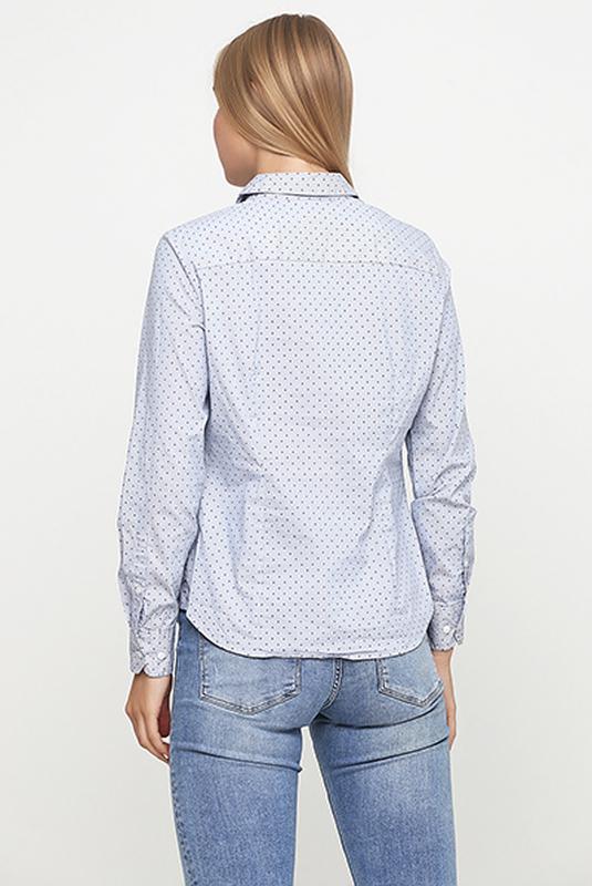 эластичная рубашка от бренда H&M разм. 32 № 01058000042 Мерки: плечи 37см, пог 39см, длина 60см, рукав 61см Приталенная рубашка с длинным рукавом из эластичного материала. Треугольный вырез и застежка спереди и снизу на рукавах. Цвет: голубой/узор-горошек Состав: 72% хлопок, 24% полиамид, 4% эластан
