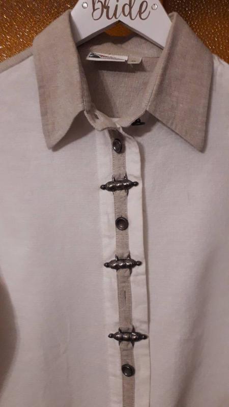 На бирке коттон, по ощущению лен с коттоном, ткань плотная. Длина 66 см , пог 54 см, поб 53 см, рукав подстегиваетс,58 см , бицепс 21. 5 см плечи 40 см . Возврата нет, отвечу на все вопросы.