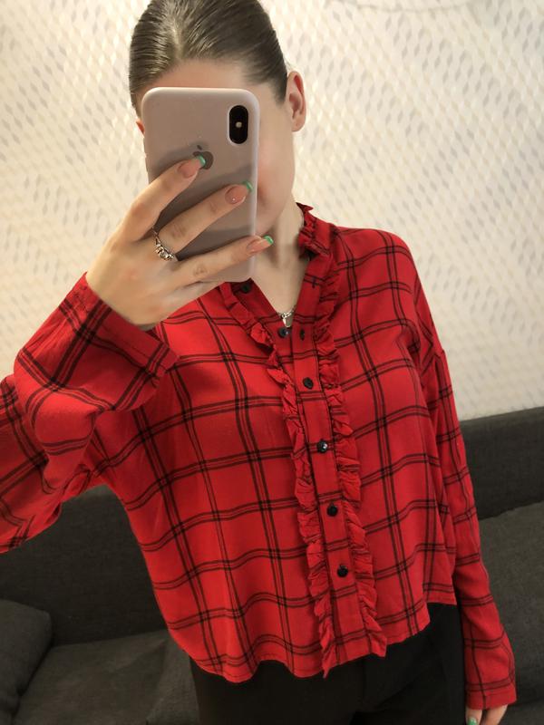 Красная рубашка в клетку, стильная и нарядная. Размер указан с, но на м и л тоже отлично садится