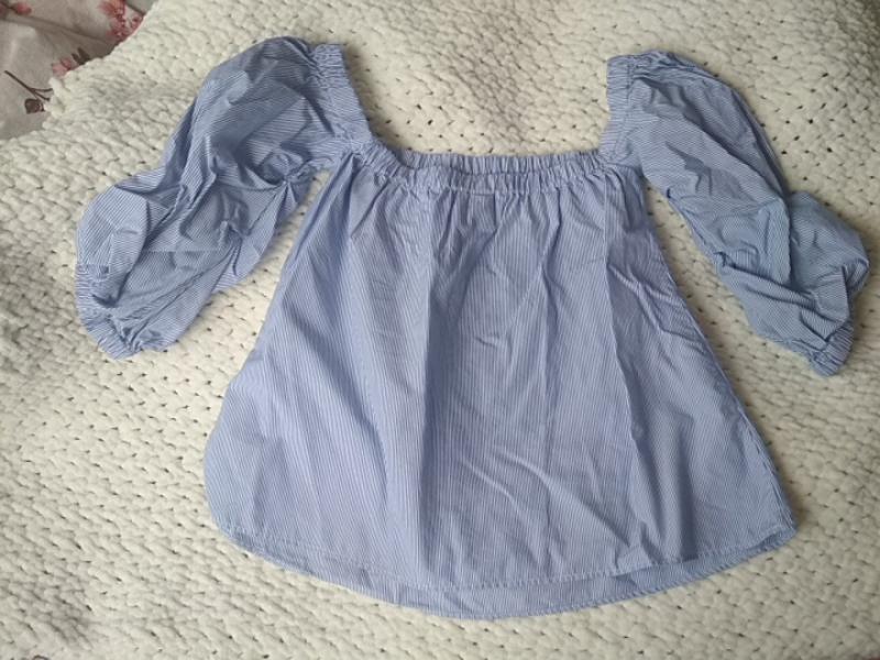 трендовая рубашка, рукава фонарики присобраны,вырез лодочка