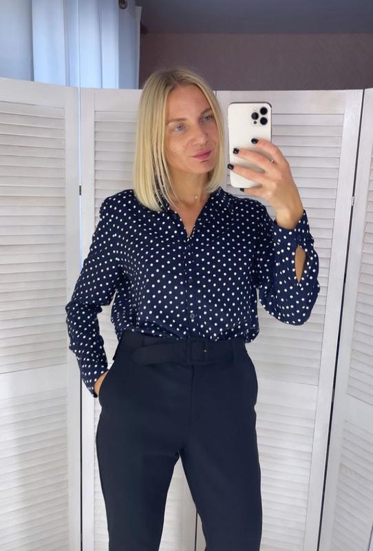 Рубашка в горох от H&M Разрезы по бокам Нат состав Размер 12 плечи 43, рукав 62, грудь 56, длина 67/70