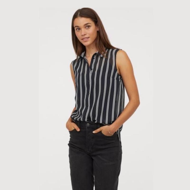 Блузка без рукавов из воздушного шифона. Воротник и застежка спереди. Кокетка со встречной складкой сзади. Скругленный нижний край, спинка немного удлинена.размеры 34,36 Шифоновая рубашка в полоску, стильная базовая весь в гардеробе замеры 34 в см полуобхват; плечи- 33,пог- 46,пот- 48,поб-50, длина- 69/72спинка,пройма-21,5см замеры 36 в см полуобхват; плечи- 37,пог- 48,пот- 52,поб-53, длина- 72/74спинка,пройма- 22см СоставПолиэстер 100%