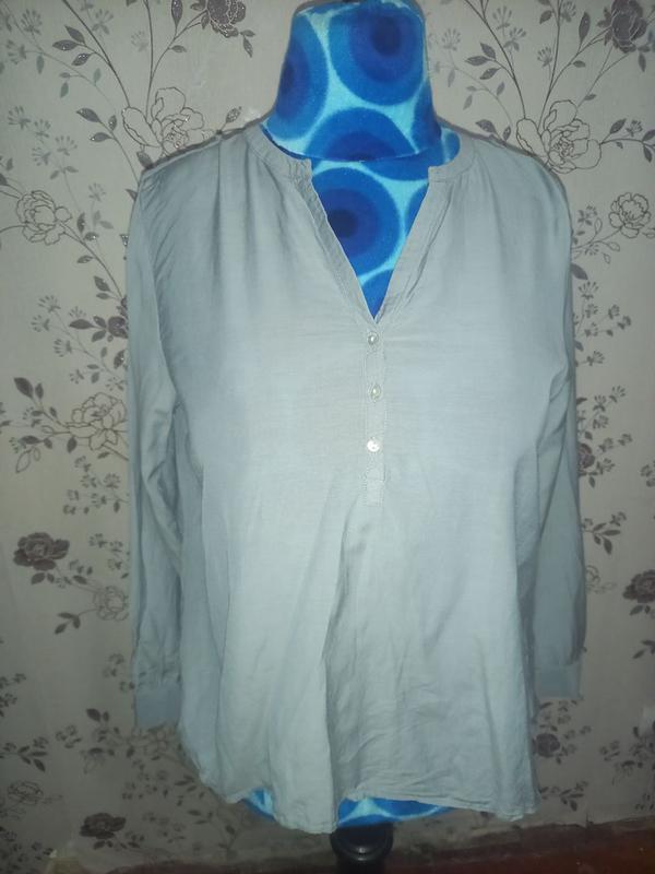 Блуза свободного силуэта из гладкой ткани. Модель с длинным рукавом на манжете с пуговицей и V-образным вырезом. Спереди — небольшая планка с пуговицами. Спинка — удлиненная. ПОГ 55 ПОТ 60 ПОБ 65 Плечи 40 Рукав 57 Длина 62/70 торг Пересылка укрпочтой или новой