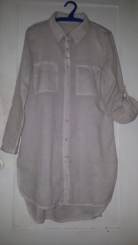 Натуральная котоновая рубашка-туника. Подойдет на размер М. Пепельного цвета. Очень легкая воздушная, можно на пляж. Замеры: плечи 45 рукав 58 Пог 52 Длина по спинке 95, спереди 86