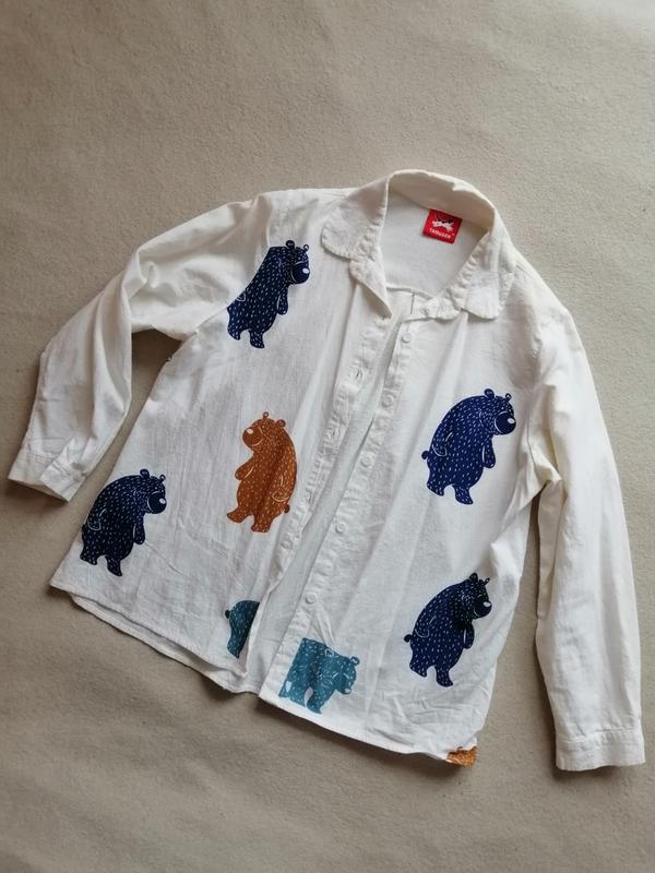 Качественная, плотная рубашка оуверсайз с мишами. Длина по спинке 62см Пог 50 см
