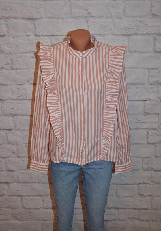 Рубашка с рюшами "H&M" размер-38 евро состав: 100% хлопок состояние-новая с биркой (рукав-75, подмышки-48, длина-60)