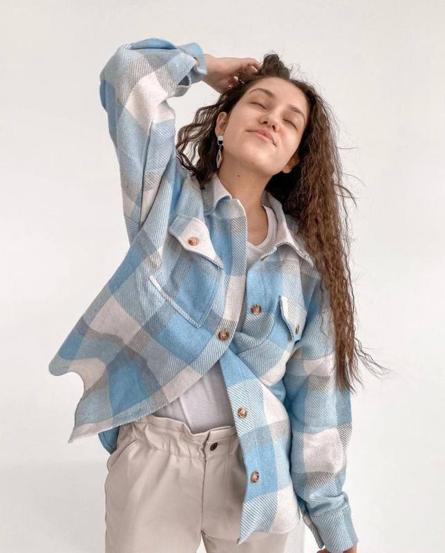 ▪️ Рубашка кашемировая в клетку #40 женская теплая , удлинённая клетчатая рубашка на пуговицах Размер - 42-46 универсал Цвет - чёрно-синий розовый шоколад голубой зелёный Ткань - кашемир Рубашка в клетку удлинённая , карманы по бокам и карманы на груди. Манжет на пуговицах. Спущенная линия плеча, свободный крой делает изделие идеальным для любого типа фигуры.