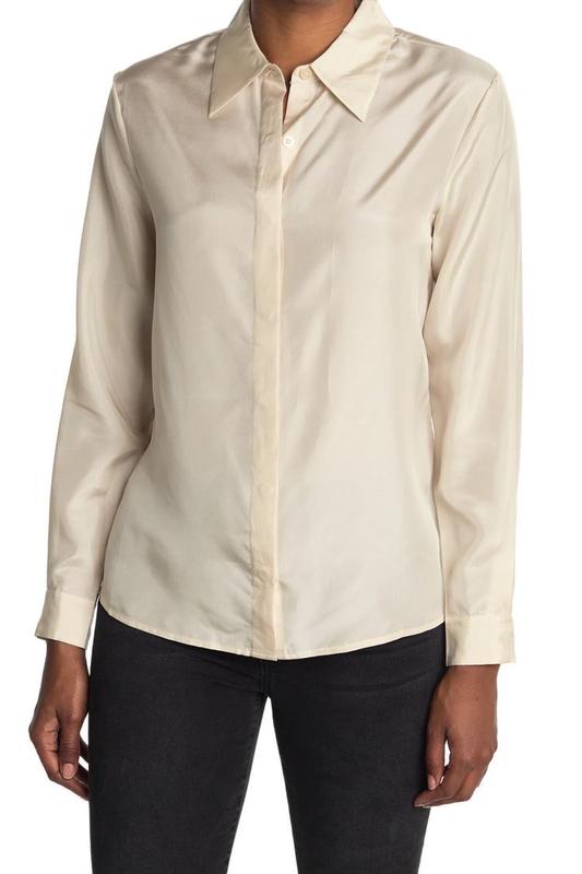 Лаконичная базовая рубашка, рукав манжет, воротник стойка. Длина 68 , пог 60, плечи 46, рукав 58/42