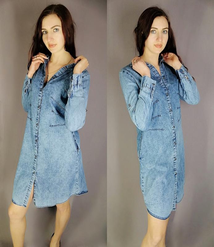 Стильное платье-рубашка на пуговицах свободного кроя. По бокам есть карманы. Длина рукава регулируется внутренней петлёй и пуговицей. Ткань лёгкий джинс, коттон. Производство Турция. Фото реальные. Размеры: S, M. Замеры: Длина: 96, 98 см Длина рукава: 59, 60 см ПОГ: 43, 45 см ПОТ: 43, 45 см ПОБ: 50, 53 см.