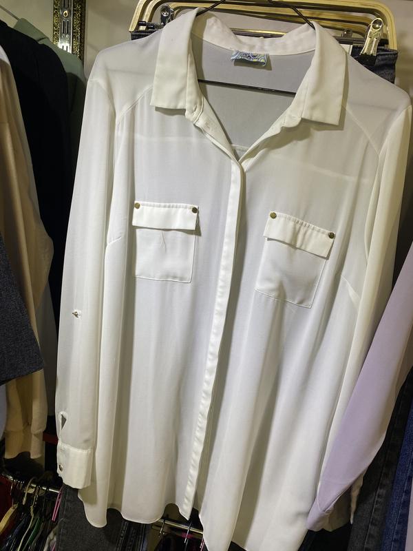 Жеская рубашка свободного кроя на пуговках впереди два кармана цвет белый без дефектов Размер ХХІ