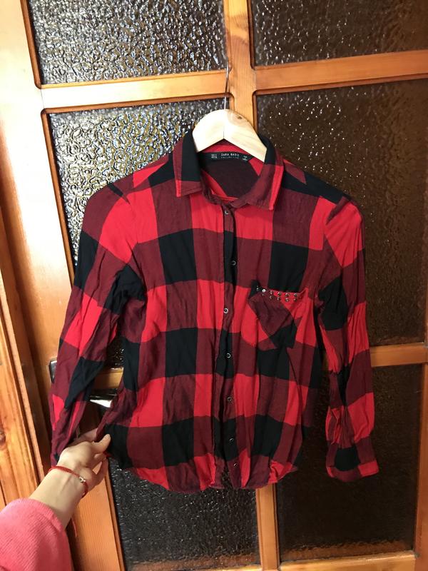Рубашка в клеточку , в отличном состоянии , пуговицы все на месте . Размер S