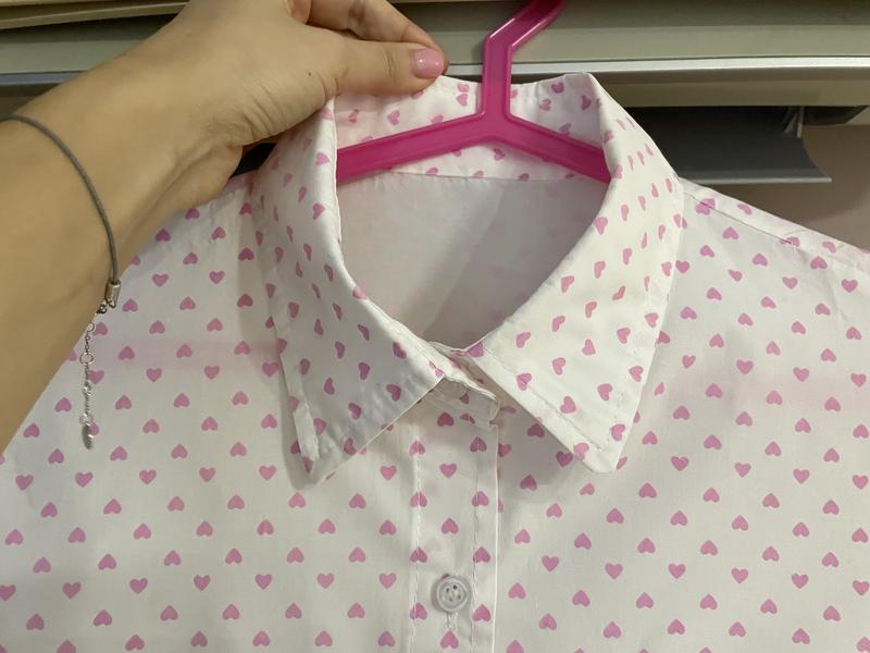 Белая рубашка в розовое мелкое сердечко Сшита под заказ На размер подойдёт на размер хс-с Состояние идеальное Без дефектов