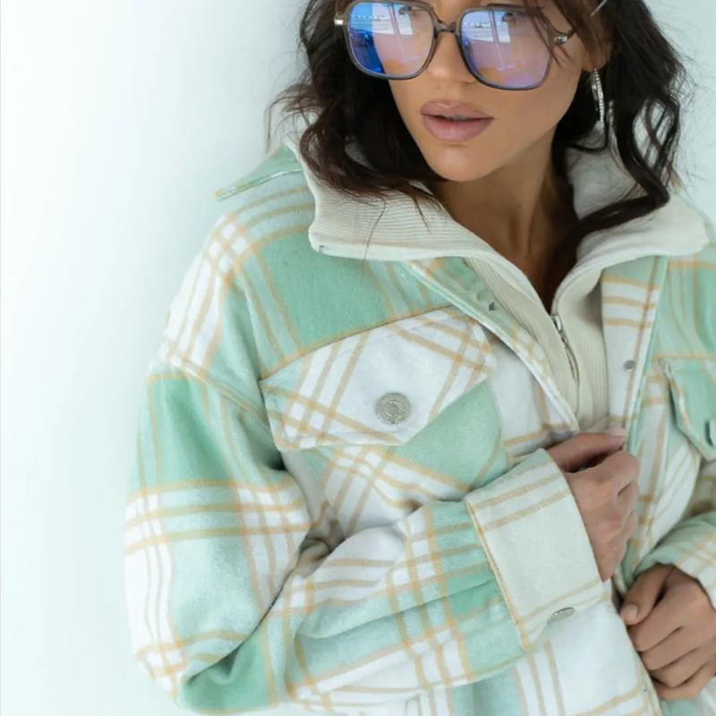 Стильна сорочка оверсайз з теплої тканини – базова річ сучасного гардеробу. Модель має широкий прямий крій. Лінія плеча спущена, рукава довгі, з манжетами на гудзиках. Комір – відкладний на стійці. На поличці розташовані нагрудні кишені з гудзиками. Розміри в наявності 40, 46.