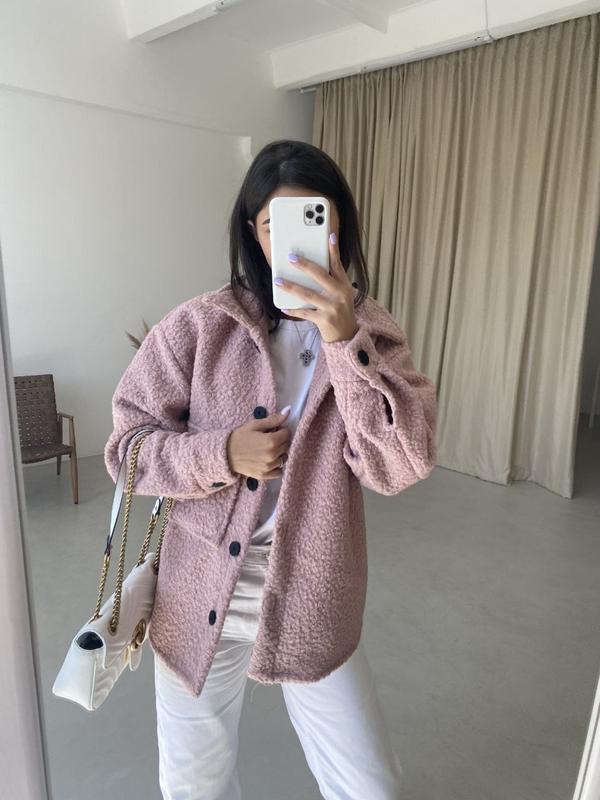 Супер Новинка 🔥🔥🔥🔥🔥🔥🔥🔥 Шубка - рубашка Модель 30216 Ткань эко-мех овчина Цвет пудра, черный, беж, Размер 42-46