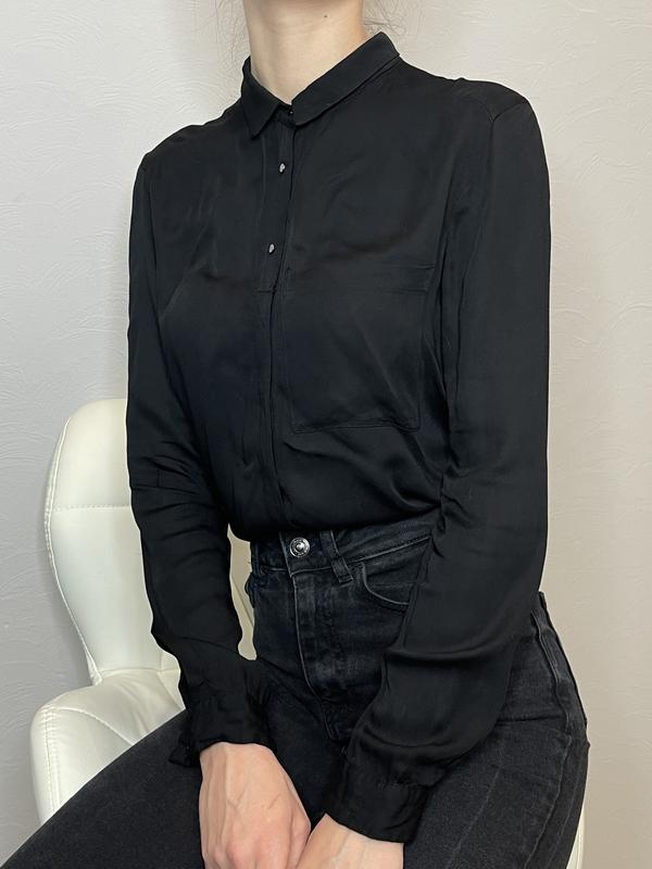Чёрная базовая рубашка Bershka. Размер S. Состояние очень хорошее . Длина рукава 57 см Ширина между плеч 38 см Длина от плеча до низа 57 см, сзади длинее.