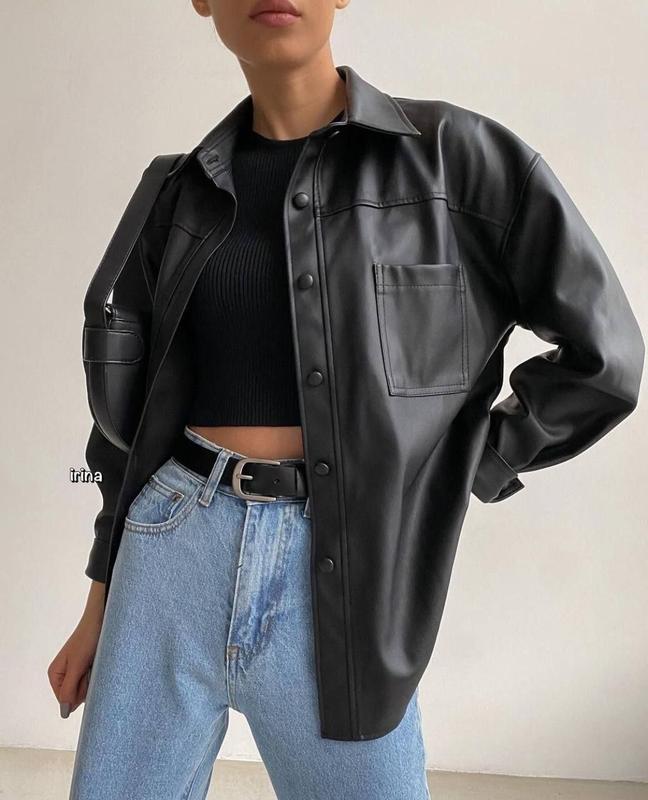 #рубашка из эко-кожи 🖤 ⚡Размеры: 42-44, 46-48 ⚡Цвета: черный ⚡Ткань: Эко-кожа 🚚 Отправка новой и укр почтой