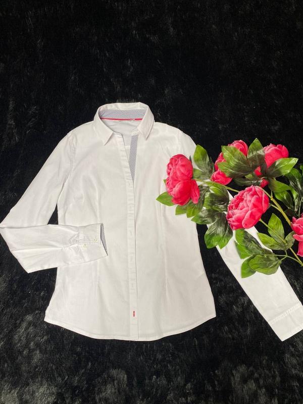 Білосніжна офісна сорочка,стрейчева,гарної якості,фото затемнило.Потрібні додаткові фото,звертайтеся.Заміри надам при потребі.