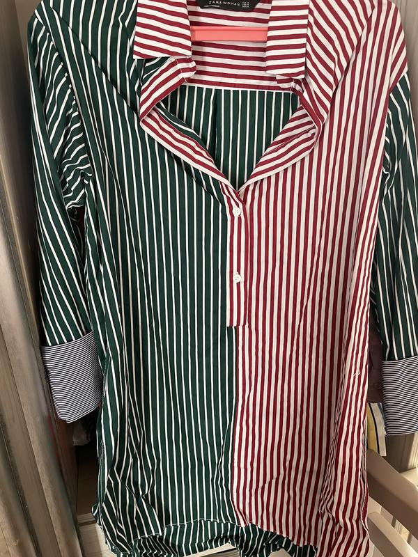 Крутая удлинённая рубашка в стиле бойфренд в полоску с высокими манжетами от Zara. Крой свободный, оверсайз, без приталивания, по бокам разрезы. Спинка длиннее переда. Ткань - 100% хлопок, не просвечивает. Состояние - новая (сток, без картонки). Размер указан XS, благодаря свободному крою подойдёт также на S-M-L. Сверяйте замеры: длинна рукава от ворота - 61 см, ПОГ - 52 см, ПОТ - 55 см, ПОБ - 58 см, длинна по спинке (не учитывая высоту ворота) - 84 см, длинна по переду от плеча до низа - 77 см.