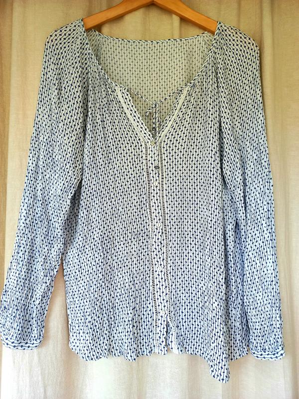 Стильная рубашка. Материал под вискозу, тянется. Размер М-L. Замеры: ПОГ 48, длина 62, рукав к горлу 62, ширина низ 50. Пересылка по Украине нова пошта, укрпочта.