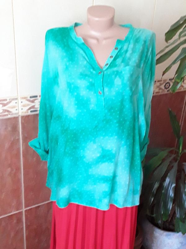 головній 🌿в ціну закладена комісія з продажу Шафе 12% Стан відмінний, дефектів немає! Колір бірюзову зелений яскравий . Тканина натуральна тонка Розмір вказаний 18/46 Дивіться за мірками Плечі кимано Підлозі обхват грудей 68 см Підлозі обхват стегон 67 см Довжина рукава від ворота 64 см Довжина 69 см 📍Доставка укр пошта нова пошта 📍Оплата 100% на карту Приват банку